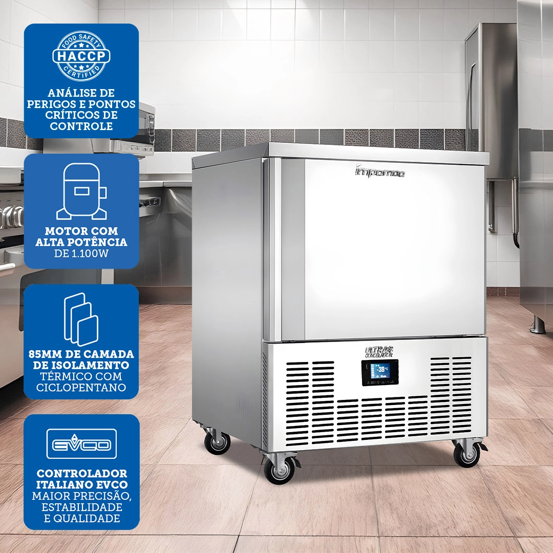 O ULTRACONGELADOR IMPOMAC IUC5 foi desenvolvido para atender às demandas mais exigentes em diversos setores, incluindo Food Service, Saúde e Laboratórios, Panificação, e muitos outros. Projetado para alcançar temperaturas ultrabaixas, o IUC5 é a escolha ideal para quem busca preservação de qualidade, segurança alimentar e eficiência operacional. Com tecnologia avançada e design robusto, este ultracongelador é uma ferramenta indispensável para garantir a integridade e a longevidade dos seus produtos.